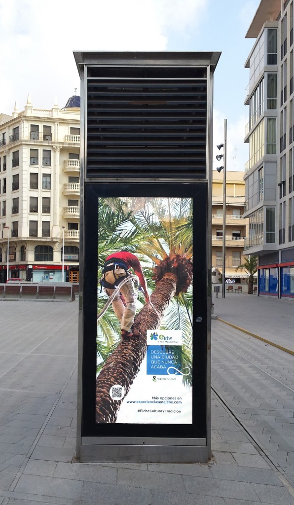 Slogan y gráfica para vestir estos soportes del centro de congresos de Elche.