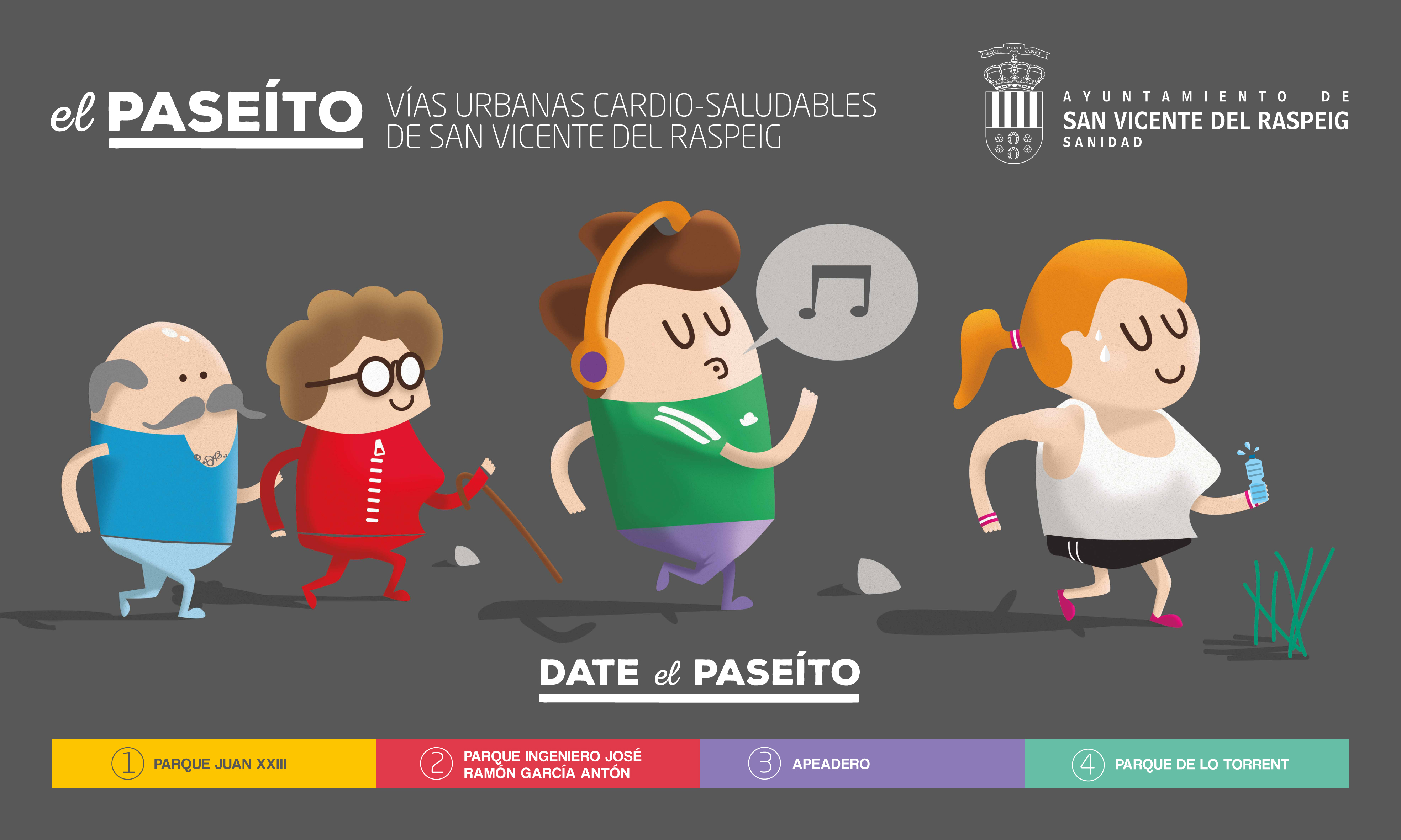 Naming, gráfica, ilustración y señalética para unas vías a pie en el casco  urbano de San Vicente.